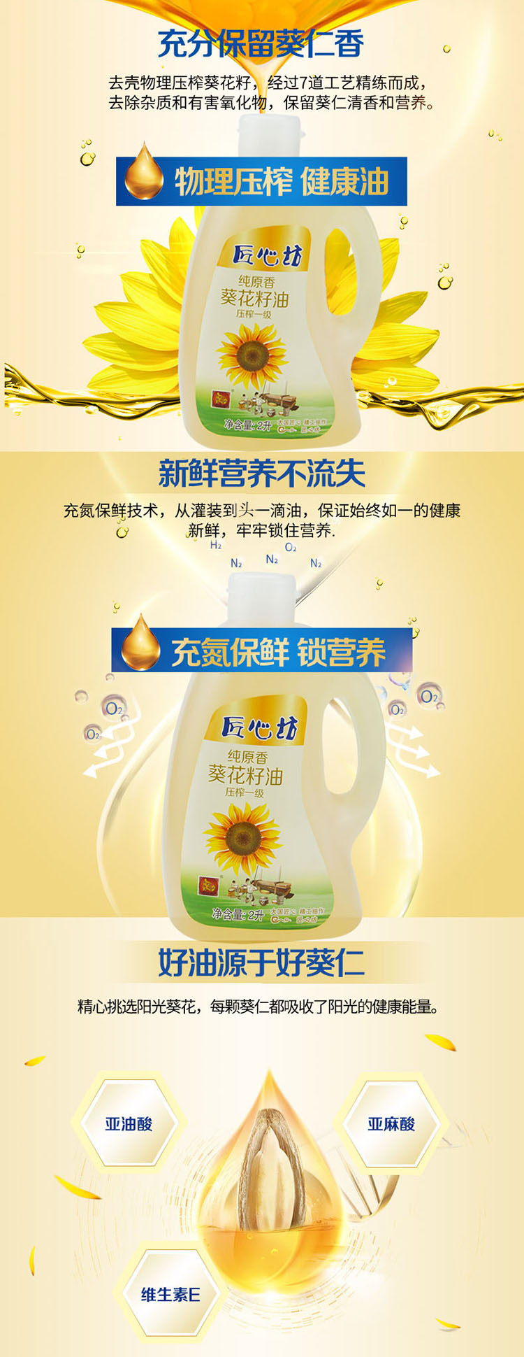 匠心坊純正葵花籽油小瓶2L葵花油2升物理壓榨一級(jí)食用油瓜子油