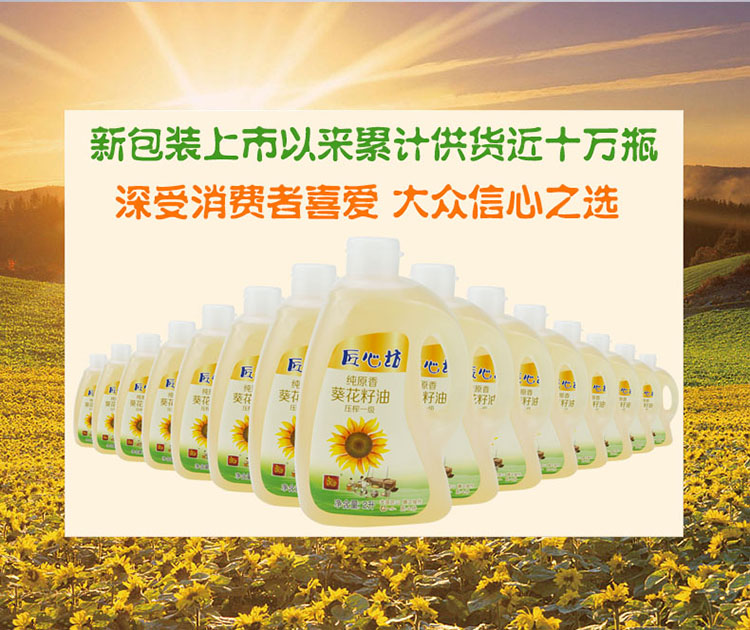 匠心坊2升小瓶裝葵花籽油物理壓榨一級(jí)2L*4不漏油嘴一箱裝